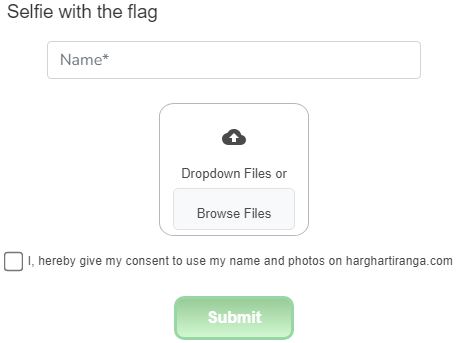 Now once you click on it, you will be redirected to the next page and here you have to enter you name and upload the selfie. At last you have to tick the check box which states, I here by give my consent to use my name and photos on harghartiranga.com and enter the submit button.