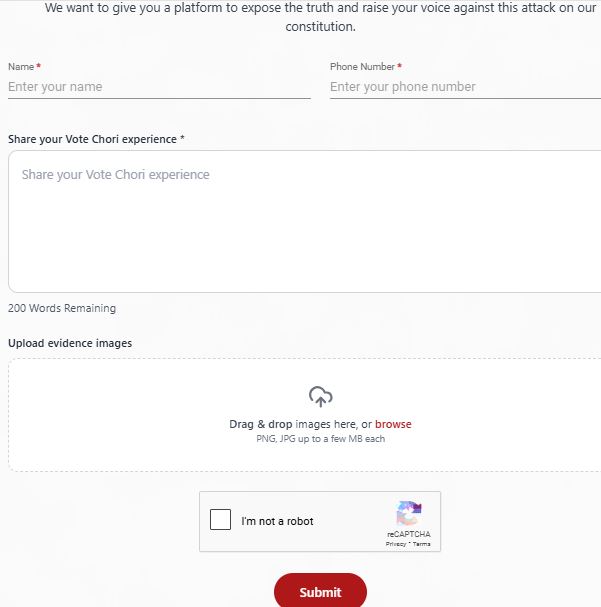 Rahul Gandhi has launched votechori.in campaign for the people to register themselves against the vote chori. In this website, people can demand accountability of the Election Commission, also you can report vote chori or any other discrepancies that happen during elections.
